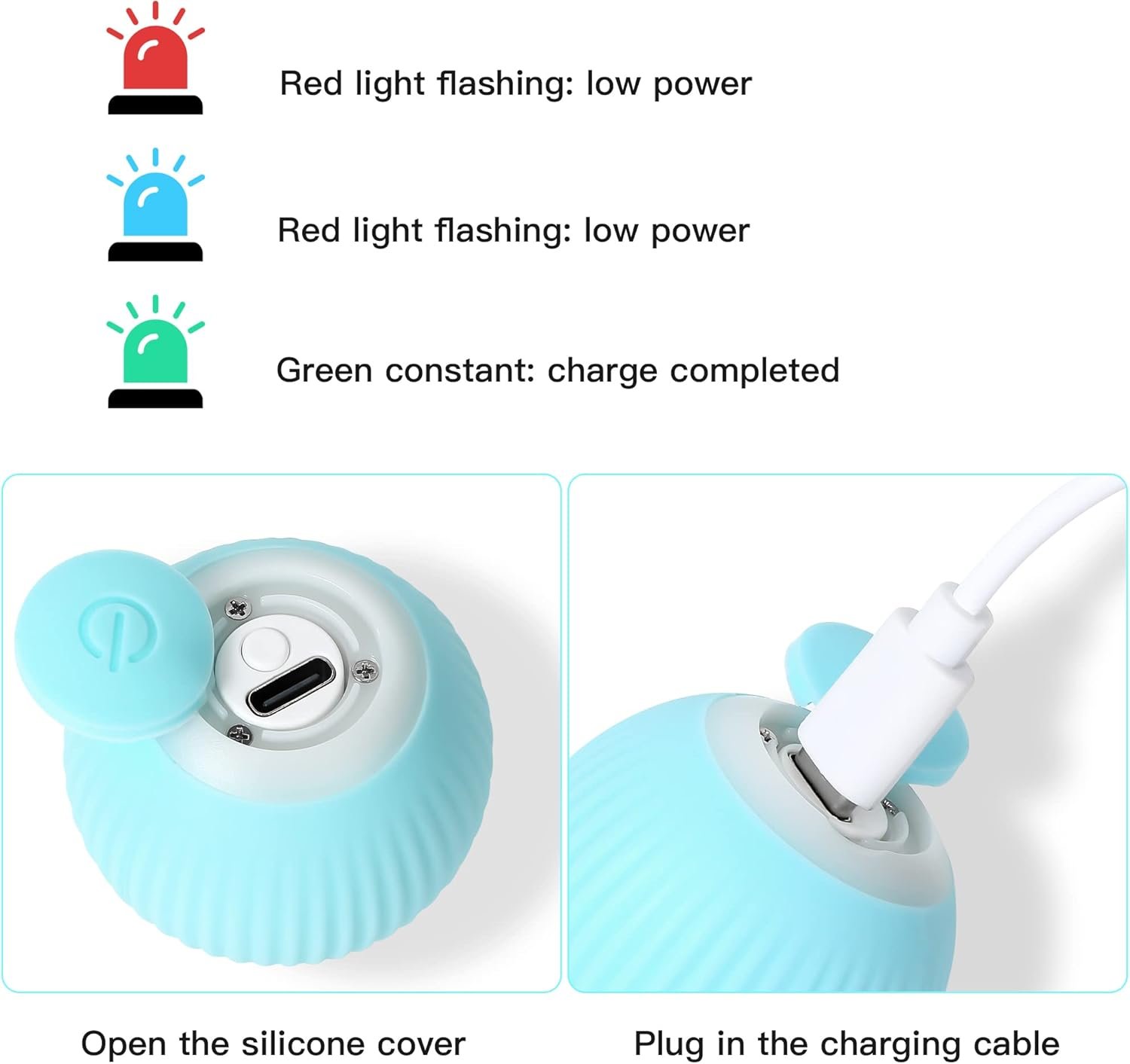 - 【Charge Type-C améliorée】La jouet chat avec la charge Type-C améliorée est plus rapide, plus stable et plus sûre. Ouvrez le couvercle en silicone pour charger. Une lumière rouge clignotante indique une faible capacité. La lumière bleue clignote pour indiquer la charge. La lumière verte est toujours allumée, lorsque la charge est terminée, veuillez charger complètement pour la première utilisation.
