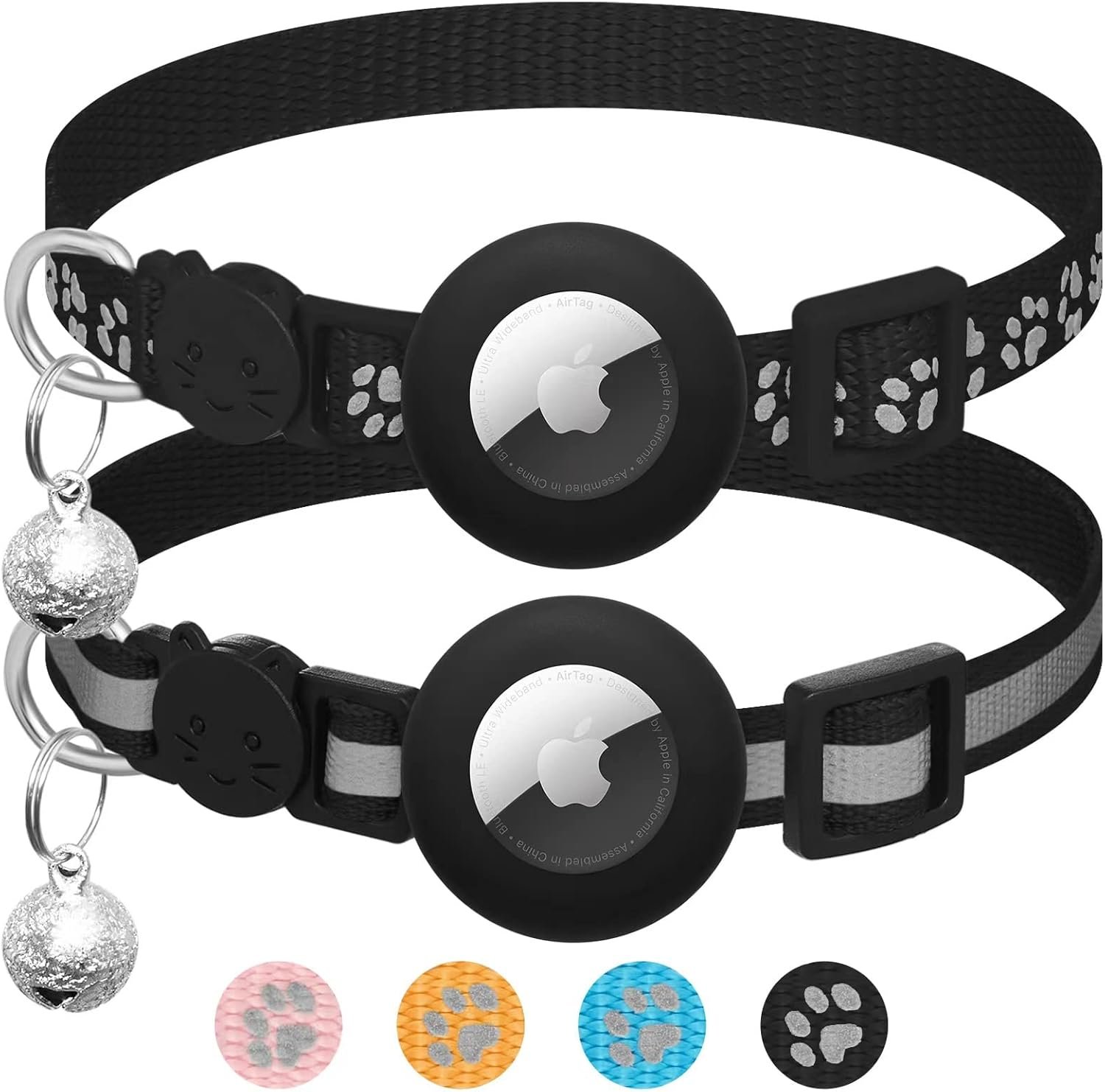 LAFAYI 2 Pack Collier Chat avec Accessoire Compatible avec Airtag Apple,Réfléchissant GPS Chat avec Anti étranglement,Réglable,GPS Airtag Non Inclus !(Noir)