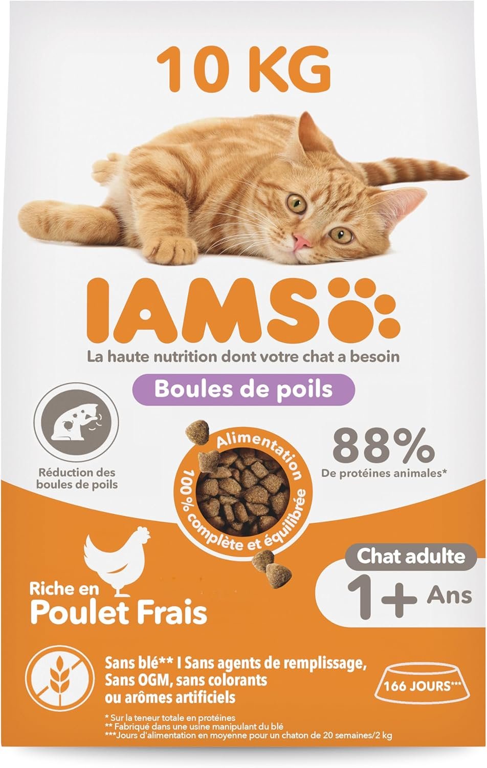 IAMS Croquette au Poulet pour Boule Poils 10 kg