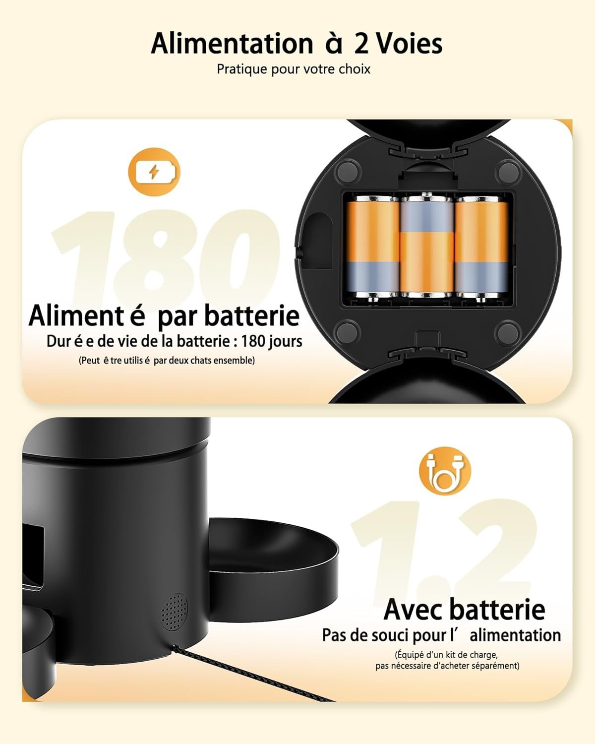 - Double alimentation sécurisée: Alimentation par adaptateur USB 5V (inclus) ou 3 piles D (non incluses). Double verrouillage du couvercle et panneau bloqué : même les chats malins ne peuvent l’ouvrir !