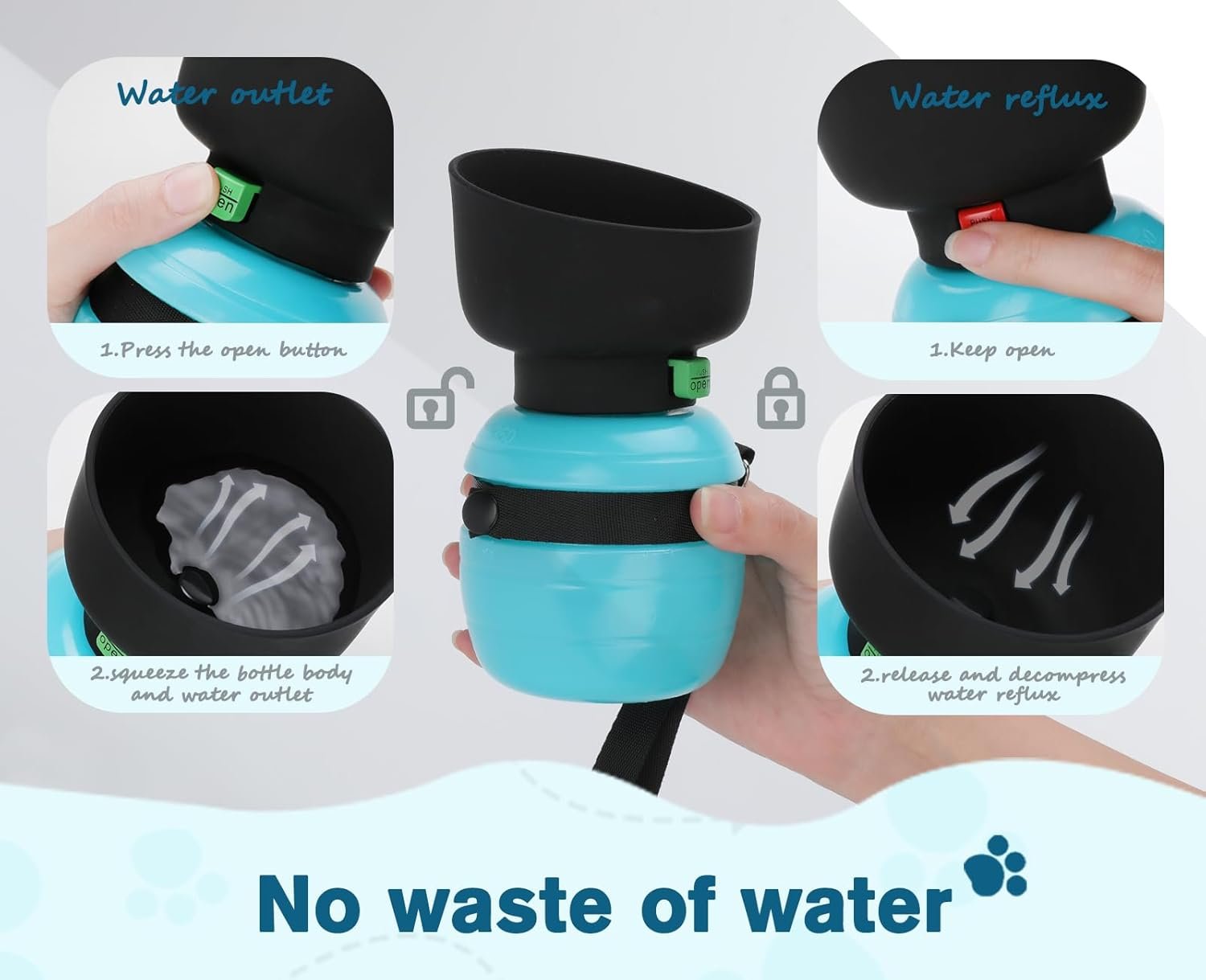• 【DESIGN TOUT-EN-UN】Notre design de bouteille et bol d’eau combiné est parfait pour votre compagnon poilu ! La feuille pliable se transforme facilement en une cuvette d’eau, éliminant ainsi le besoin d’un bol supplémentaire. Après avoir bu, il suffit de la replier – c’est aussi simple que cela !